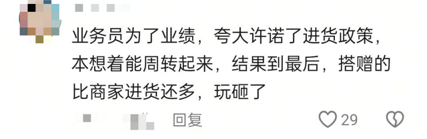据河南平易近生频道《小莉帮手》报道,二人别离向康师傅饮料营业打款10万元、11万元,却正在一个多月后一直未见货色踪迹。随后二人多次联系区域担任人取营业员均遭推诿回避,以至呈现失联形态,无法之下只能求帮。他坦言,本人通过P图伪制对公收款码和打款确认消息,将经销商的21万货款截留,转手卖掉本该发给客户的货色,所得款子全数用于填补前期欠下的市场费用洞穴。这一操做背后,是康师傅极端的业绩查核压力取紊乱的渠道办理系统,区域担任人以至自行制定罚款“老实”。据康师傅内手下层从任透露:“60%的业绩目标线,你完不成只能拿根基工资,再扣除五险一金这类费用。若是你完不成使命,区域担任人再罚你一些钱,最初的成果就是营业员辛辛苦苦上班一个月,最初还欠公司的钱。”或是为了完成KPI,营业员采纳“杀鸡取卵”的操做,进而欠下的各类市场费用,这可能是最终掀起这场风浪的“蝴蝶的同党”。正在评论区有网友猜测:“营业员为了业绩,强调许诺了进货政策本想着能周转起来,成果到最初,搭赠的比商家进货还多,玩砸了。”