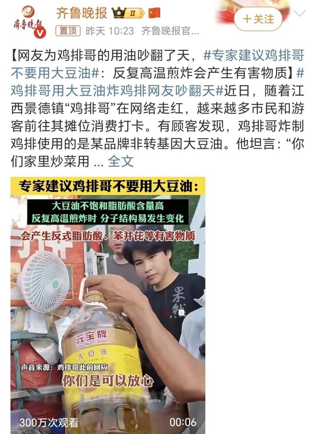 食物平安争议成为第一个冲破口。有网友发觉其利用的大豆油存正在 “高温频频利用” 现患,虽然后来鸡排哥晒出市场监管部分的查验演讲自证洁白,称 “每份产物都及格”,但质疑者指出“演讲仅显示抽检及格,未证明每日换油”。