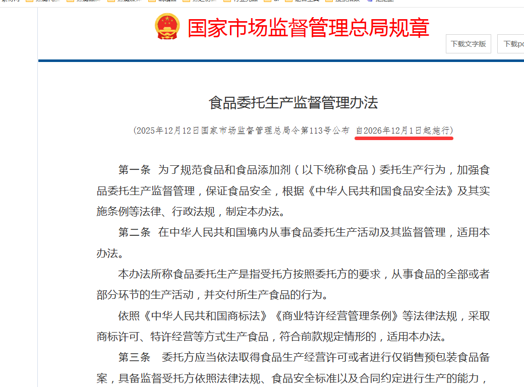 。这项被称为“史上最严委托出产新规”的出台,标记着食物代工行业将辞别“贴牌即甩责”的粗放时代,进入!